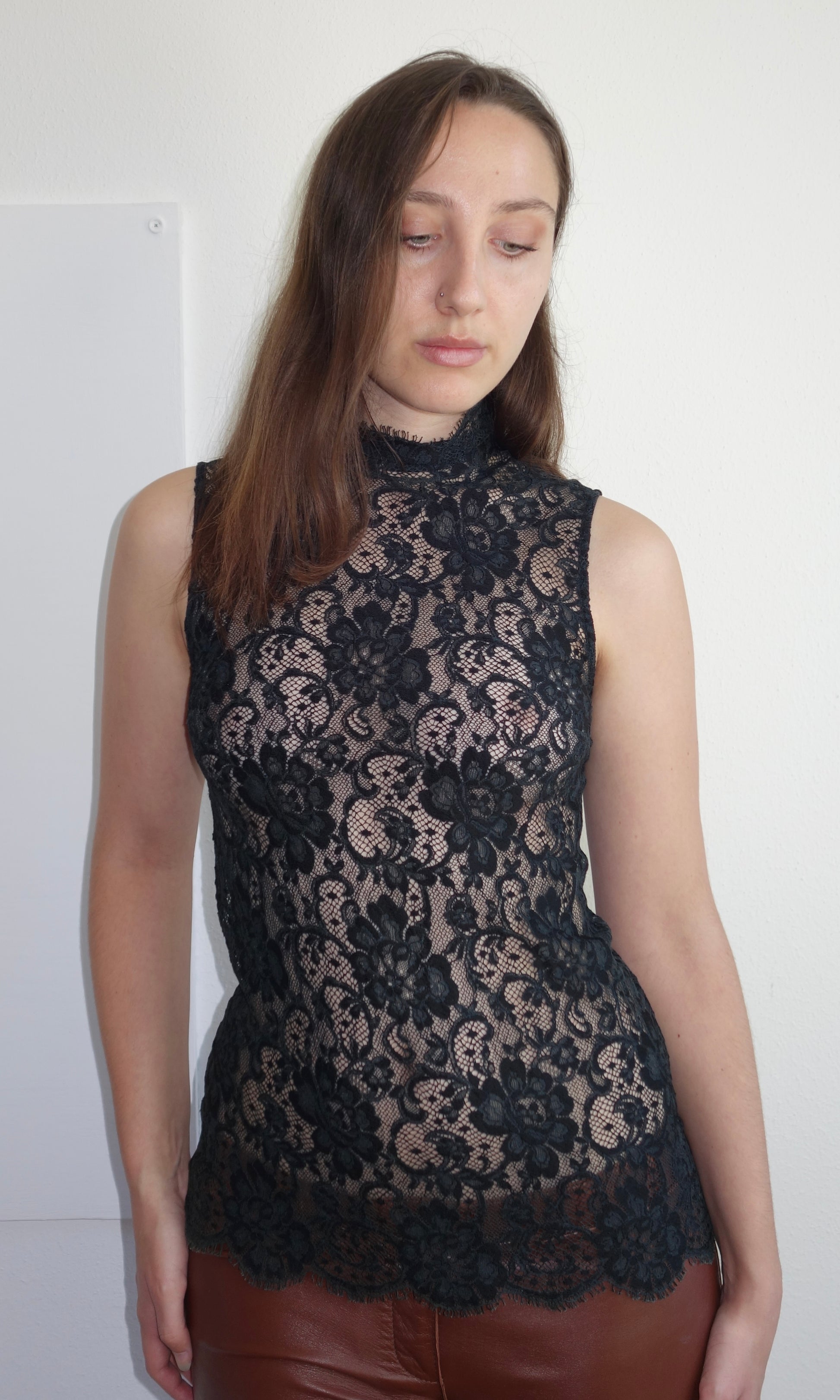 Dolce and Gabbana fw 2001 lace top with high collar. As seen on the runway in similar styles. Zipper on the back. Size it 42.