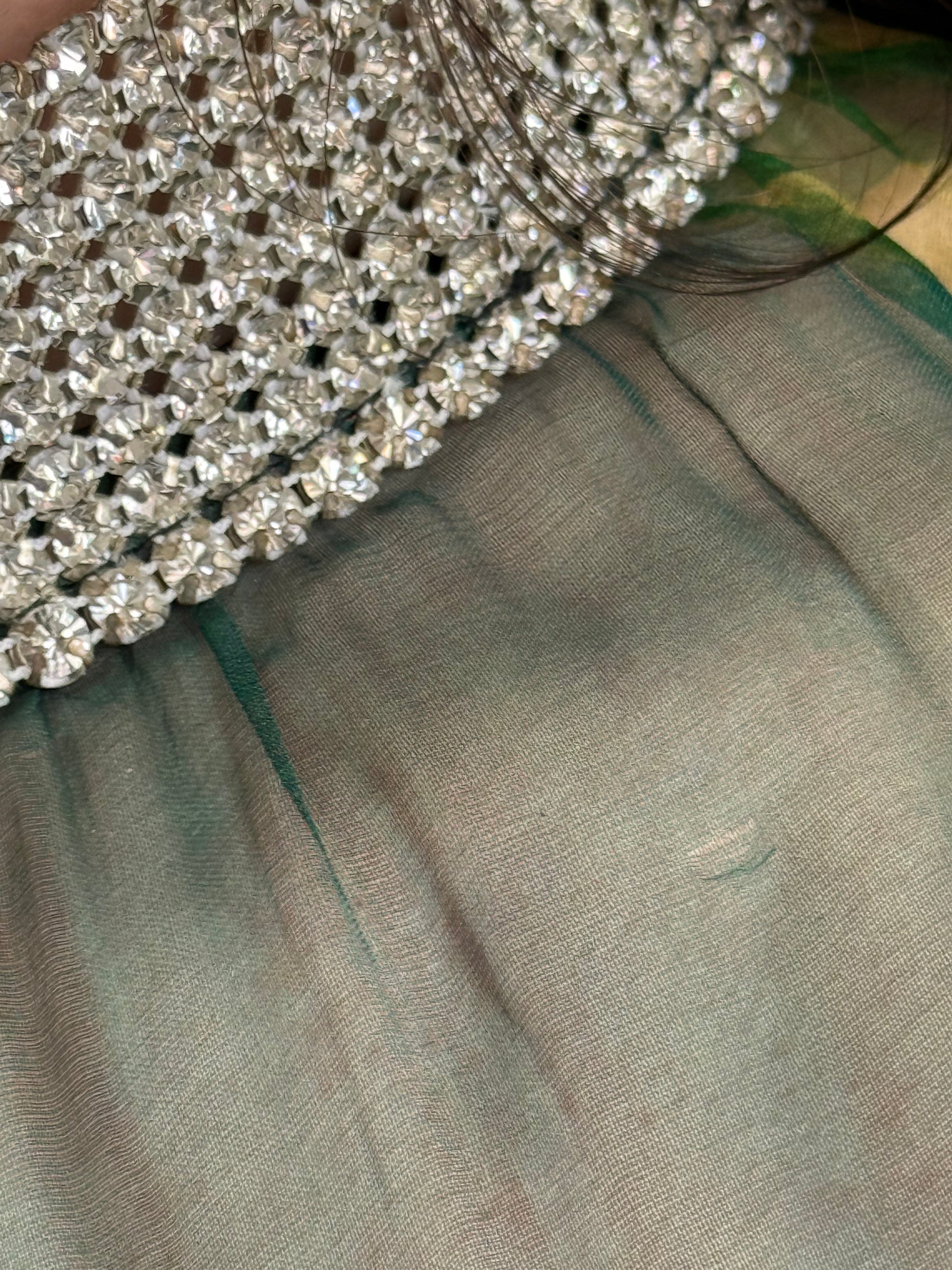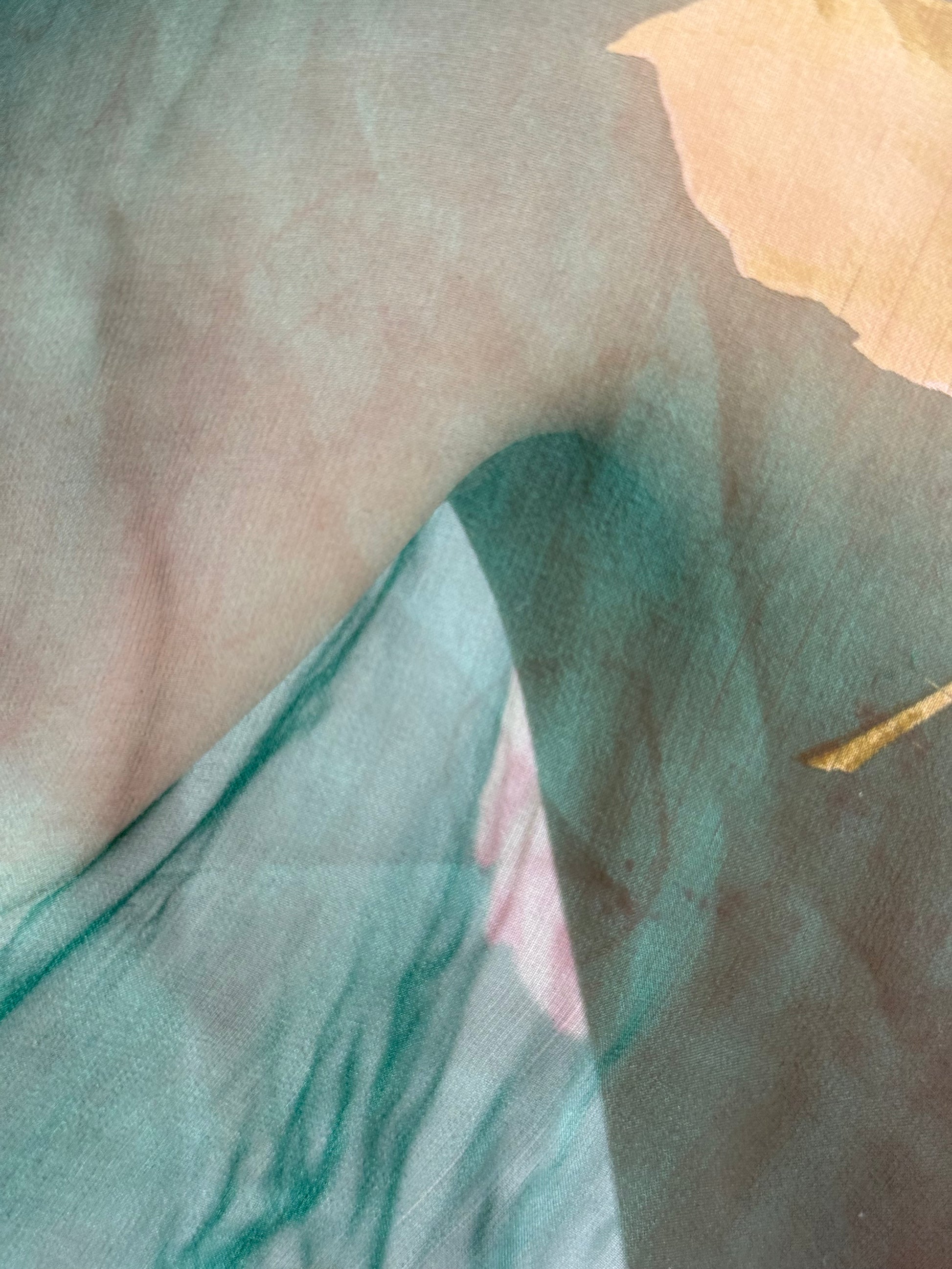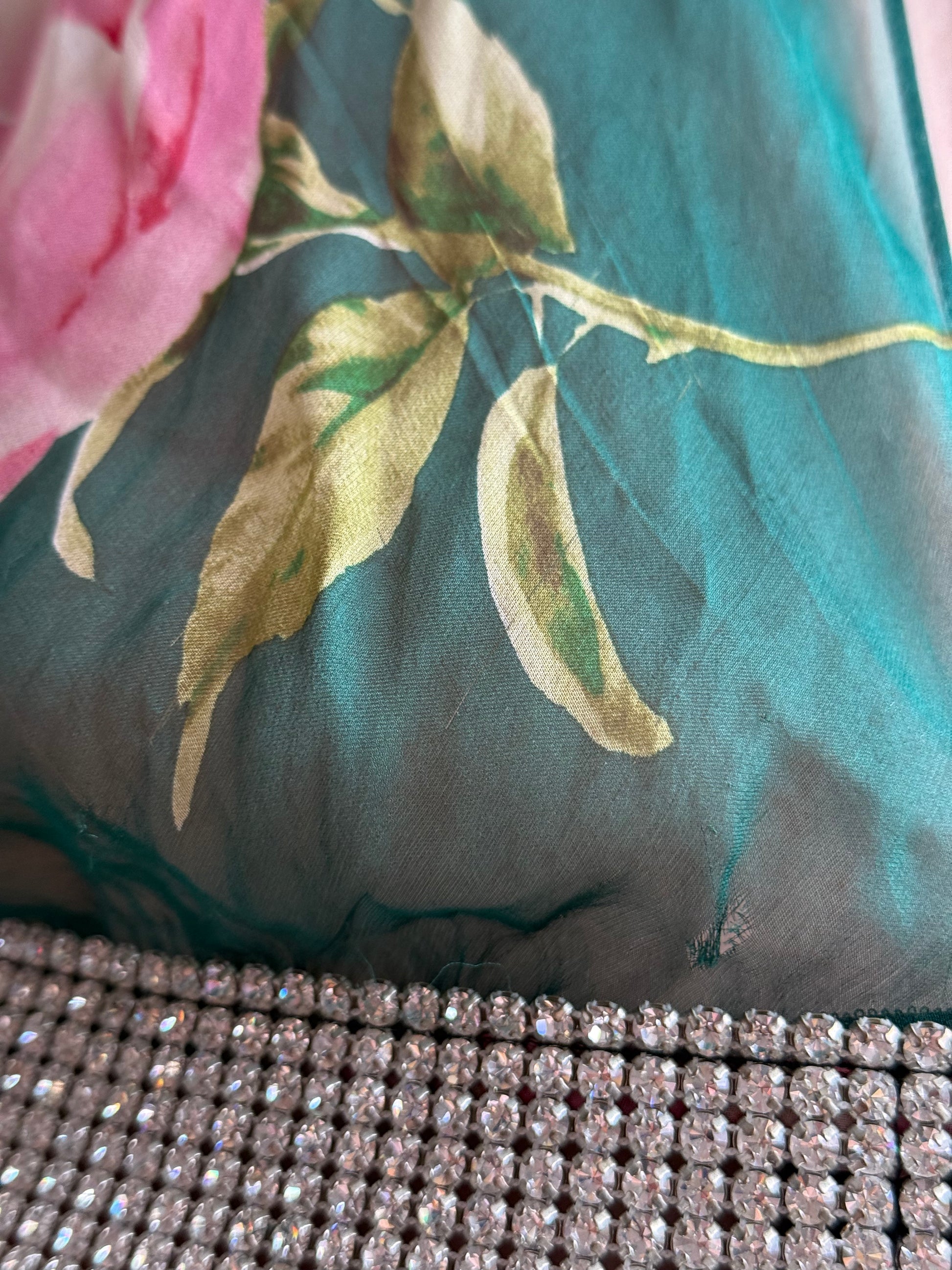 Dolce and Gabbana ss 2000 blouse. Painted silk and rhinestone cuffs. As seen on the runway. Size it 44. Shown on a size S. Waist measurements: 36 cm. Some wear on the silk as photographed.