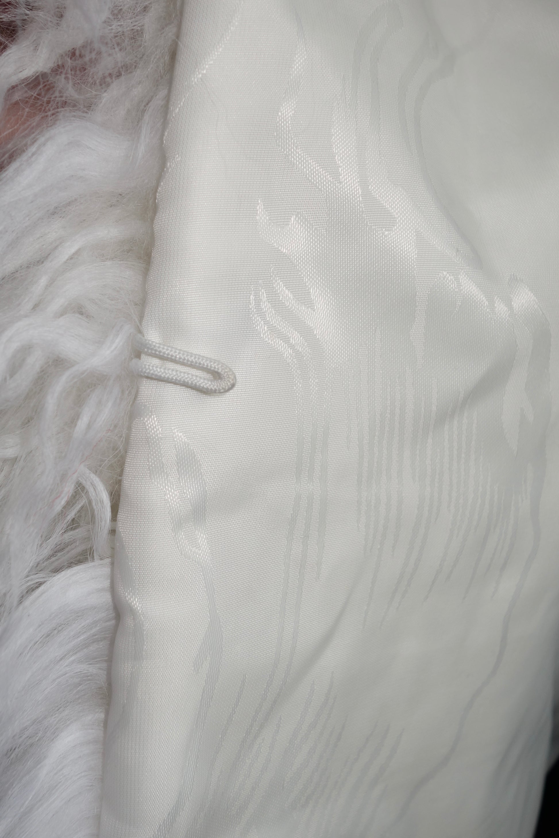 Vintage oversized Mongolian fur coat in white. Closes with hookes. One size.